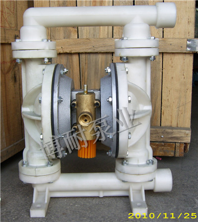 我公司生產(chǎn)的QBY系列氣動隔膜泵是一種新型輸送機械,是目前國內(nèi)最新穎的一種泵類。QBY系列氣動隔膜泵采用壓縮空氣為動力源,對于各種腐蝕性液體,帶顆粒的液體,高粘度、易揮發(fā)、易燃、劇毒的液體,均能予以抽光吸盡。其性能參數(shù)與聯(lián)邦德國的WLLDENPVMPS、美國的MARIOWPUMPS相近。我公司目前已形成系列化生產(chǎn),共有八種規(guī)格直徑:φ10mm(3/8'')、φ15mm(1/2'')、φ25mm(1'')、φ40mm(11/2'')、φ50mm(2'')、φ65mm(21/2'')、φ80mm(3'')、φ100mm(4'')。四種材質(zhì):鋁合金、鑄鐵、不銹鋼、工程塑料。隔膜泵根據(jù)不同液體介質(zhì)分別采用丁晴橡膠、氯丁橡膠、氟橡膠、聚四氟乙烯隔膜。以滿足不同用戶的需要。